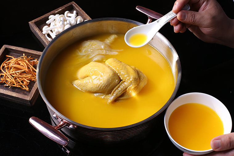 “喝著啤酒泡枸杞”“熬最晚的夜,敷最貴的面膜”……這些看似調(diào)侃的語氣,實則透露著時下全民對健康生活方式的追求。所以,廣式火鍋要做到既滿足火鍋情結(jié),還帶有養(yǎng)生屬性,在這方面豬肚雞特點非常契合。傳統(tǒng)的廣東豬肚雞都要輔以藥材入湯,一鍋濃郁的白湯營養(yǎng)滋補(bǔ),這是養(yǎng)生屬性;同時,豬肚雞又是廣式火鍋中唯一能加“辣”的火鍋,這里的“辣”指的是胡椒,喝湯吃肉后還用廣州特色食材作涮菜,最后主食再來一份燒臘,可謂火鍋的完美配置。