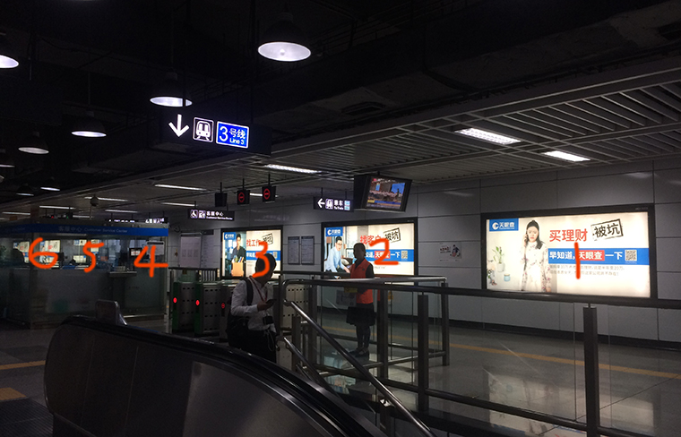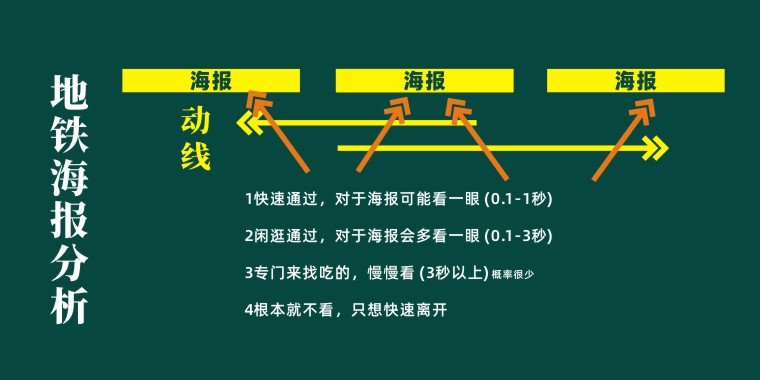 通過在地鐵站現(xiàn)場觀察,品深發(fā)現(xiàn)蘩樓的地鐵海報位置單面靠墻,閱讀動線是沿著墻的路徑左右行走,目標(biāo)是向前方換乘或出站,由于客流密集,路過此處的人完全無法停下來,看到海報的大部分的機會是眼睛的余光一掃而過,邊走邊看。