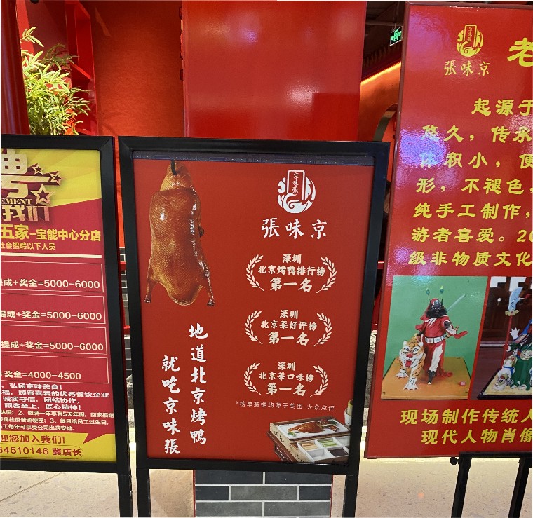 第四要素:門面中應(yīng)該有發(fā)光燈箱廣告,以精致圖文并茂的形式呈現(xiàn)食物高精度畫面,讓顧客產(chǎn)生強烈的食欲;或海報展現(xiàn)食物的制作技法,體現(xiàn)食物背后的匠心,讓顧客震撼、感動。主推產(chǎn)品讓客人看到就想買。這個就好吃,買這個沒有錯。悅得閑廣式點心茶樓每一個店門口推的點心紅米腸就是這一做法的體現(xiàn)。