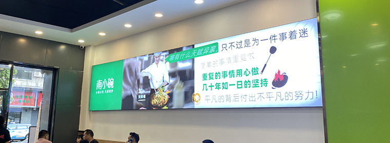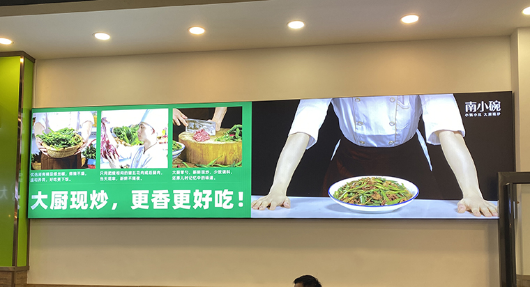 我們通過前期周密的市場考察和詳細的內部調研,品深餐飲全案設計團隊為南小碗提取了“小鍋小灶,大廚現炒”的核心訴求,并在門頭和店內廣告畫面不斷重復強化“小鍋小灶,大廚現炒”小鍋小灶更有鍋氣,大廚現炒更好吃。并把食材原產地,和菜品制作過程在門店形象中不斷放大,重復,讓消費者記憶深刻。