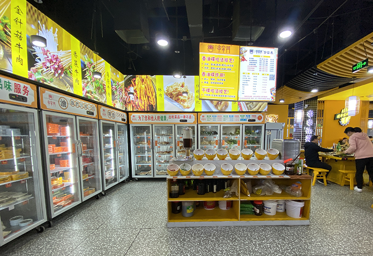 品種多樣、地道好吃、熱鬧好耍”為市場定位,以顧客自選模式,100多種串串菜品,幾十種四川特色小吃,四川特色燒鹵味,精致甜品,酒水飲料,應有盡有,想吃什么拿什么。