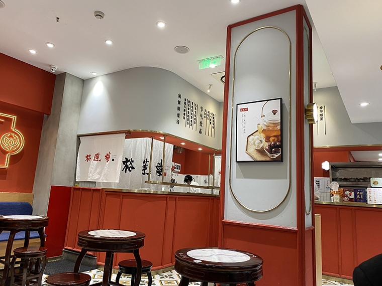 我們通過對香港本土糖水店,上海當地糖水老鋪進行詳細的調研,并結合當下流行趨勢。我們發現,喝糖水最多的都是女性顧客,糖水有養顏駐顏的功效。我們提取了當下最流行的“故宮紅”,將主題定位為“來自故宮的視覺盛宴”,整個門店大面積紅色和金色搭配,配色熱情而有貴氣。
