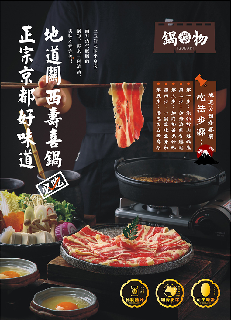 做法地道:玉椿大師傅跟隨日本京都關西壽喜鍋名家貼身學習多年,得大師傅地道真傳;