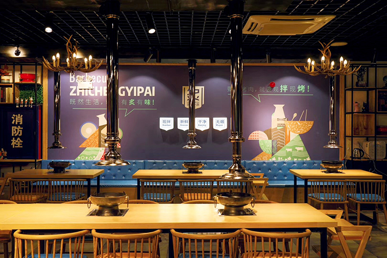 炙成一派作為海口首家現(xiàn)拌烤肉,具有明顯的市場先發(fā)優(yōu)勢,在空間中通過氛圍體驗(yàn),品牌訴求,在消費(fèi)者心目中植入現(xiàn)拌烤肉就是炙成一派,將品牌等同于品類。通過空間的視覺體驗(yàn),燈光感受,食物的味道,家具軟裝的觸感體驗(yàn),讓顧客能放松心情,享受美食,有情懷,有情調(diào),有趣味。顧客置身其中,心靈宣泄,釋放壓力,最終產(chǎn)生品牌的粘性和較高的復(fù)購率。